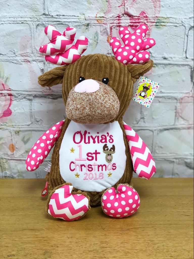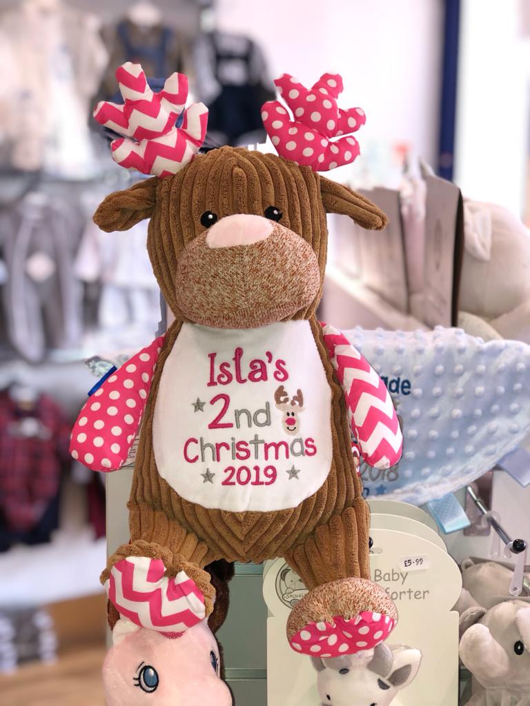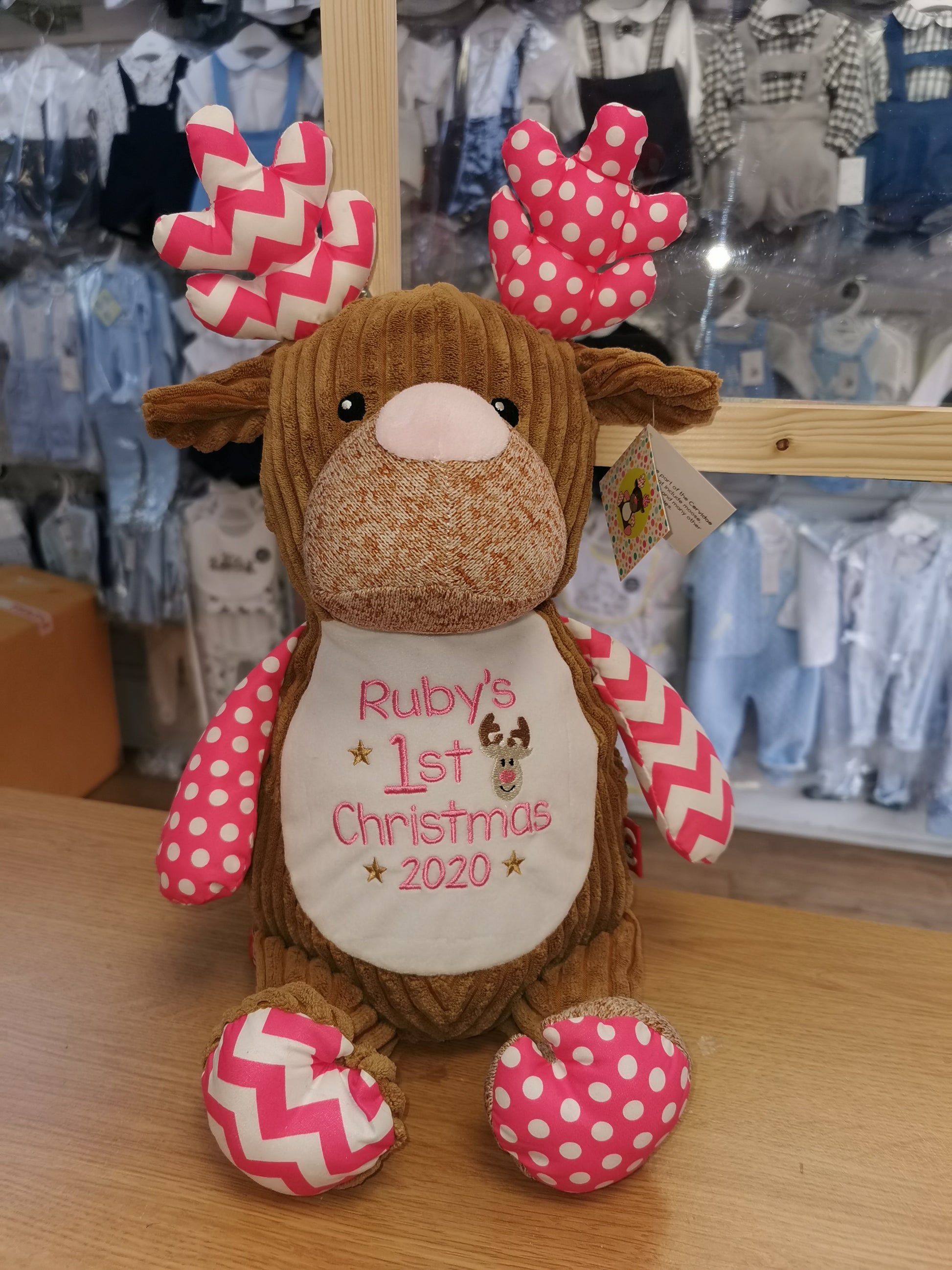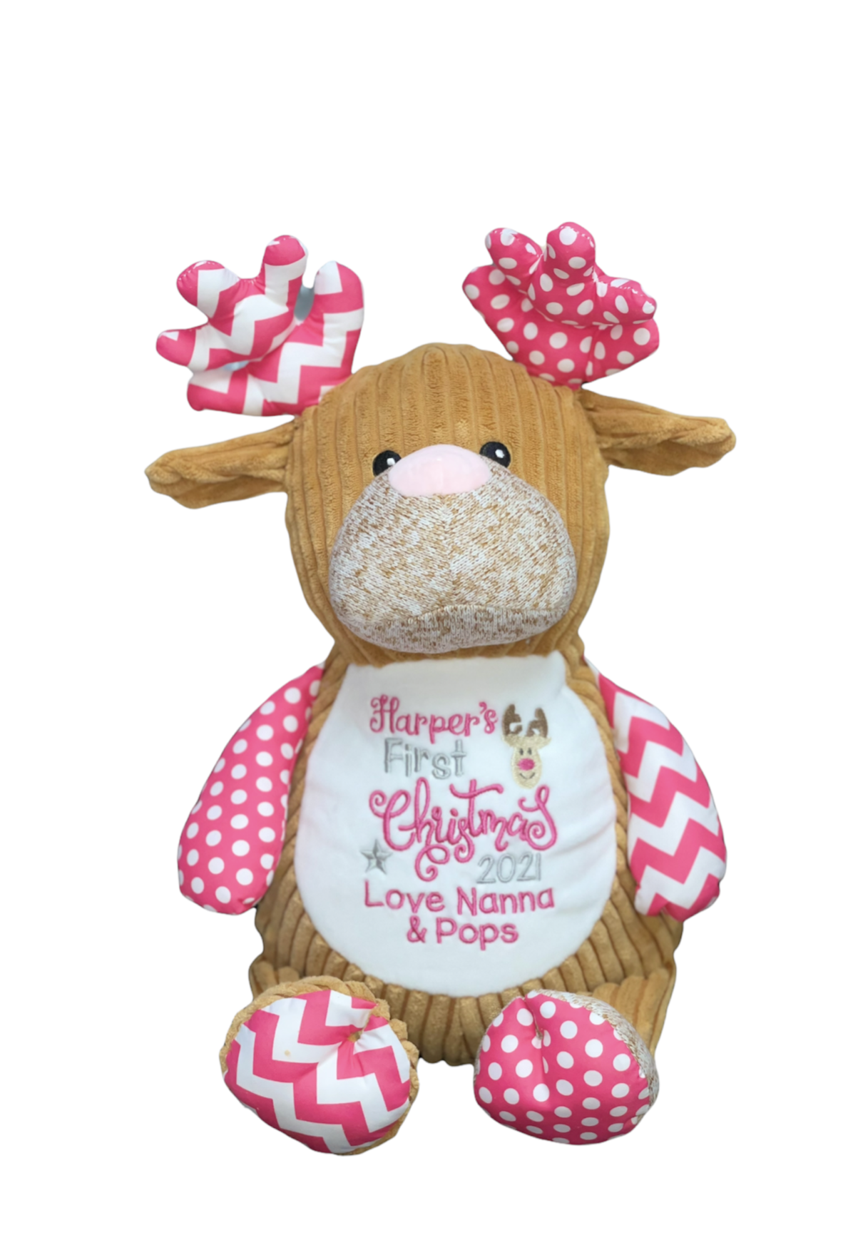 Personalised Cubbies pink reindeer Personalised with your choice of wording / design