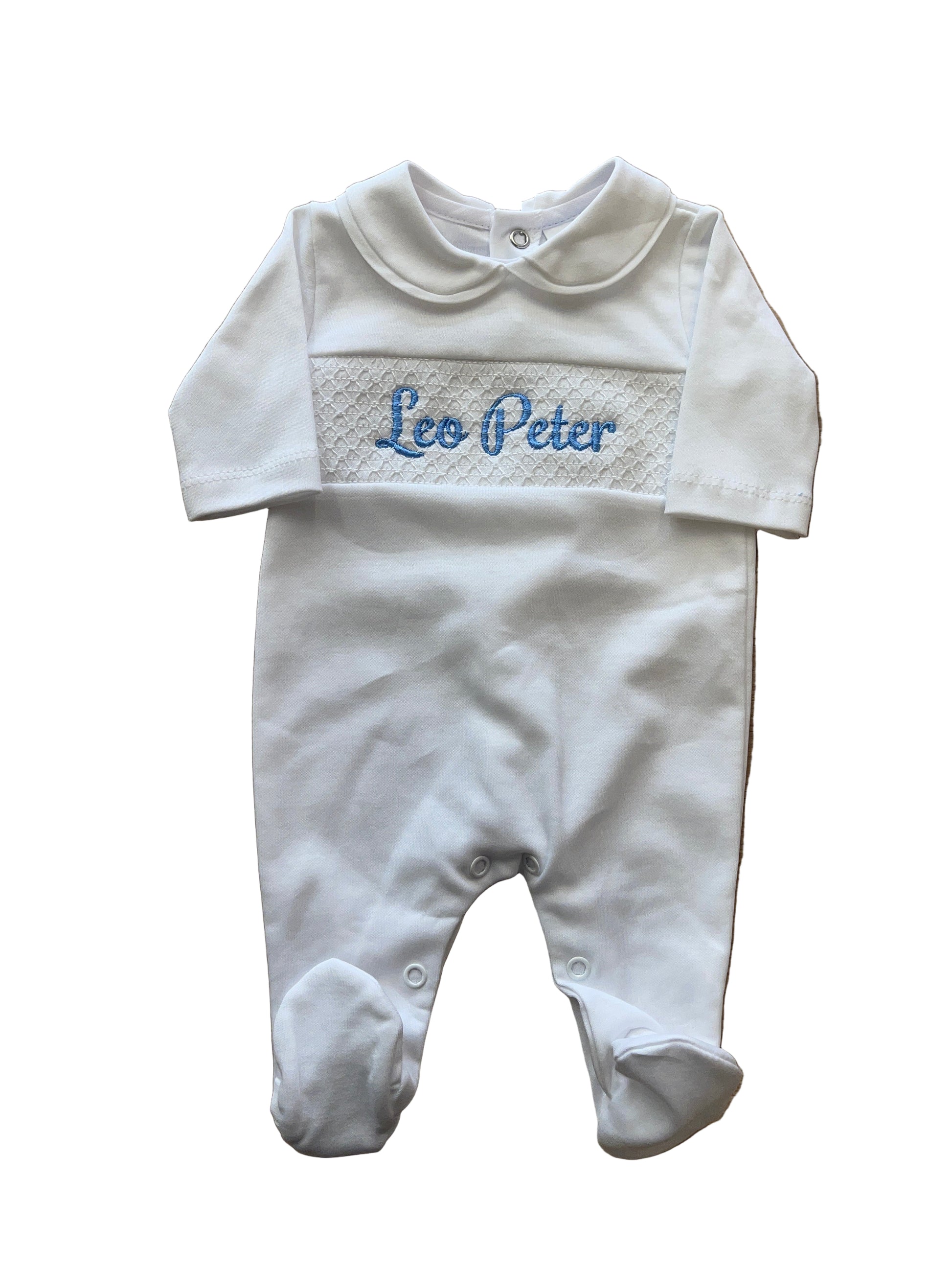 Personalised White Smocking sleepsuit