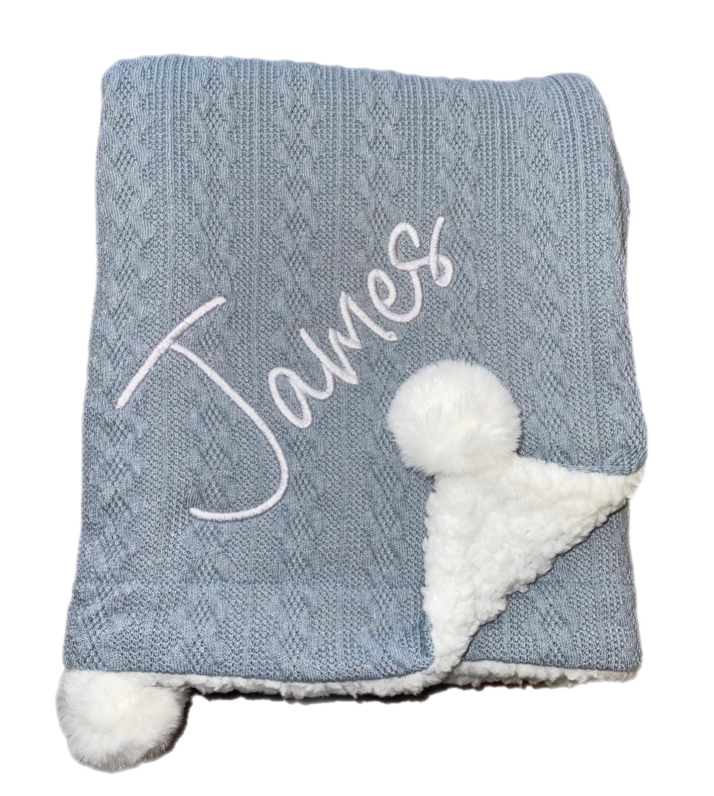 Our lovely luxury cable knit Pom blankets are fab, they have a super soft Sherpa backing with big Pom Pom to the bottom 2 corners