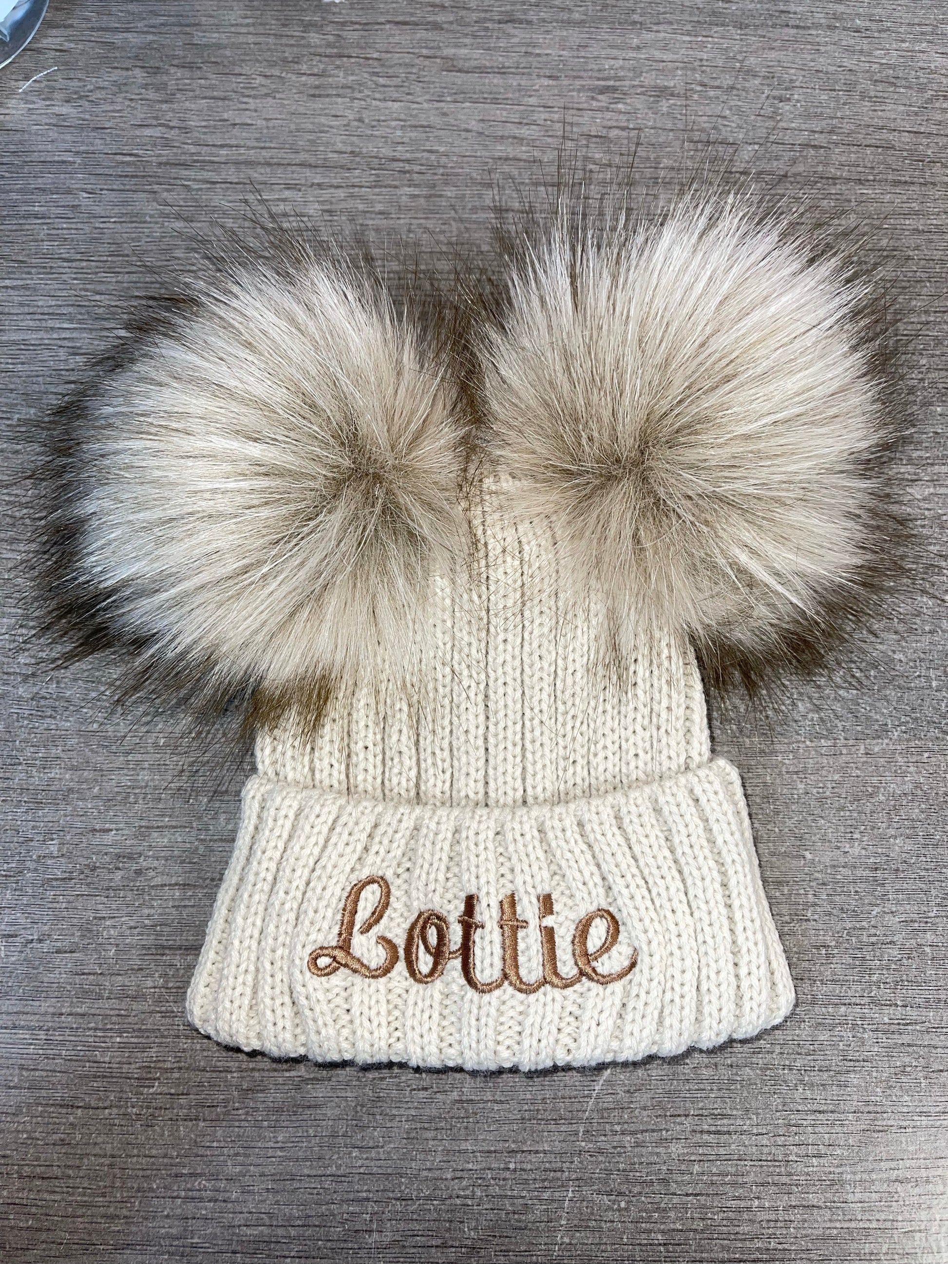 Personalised Luxury double pom pom hat - Beige