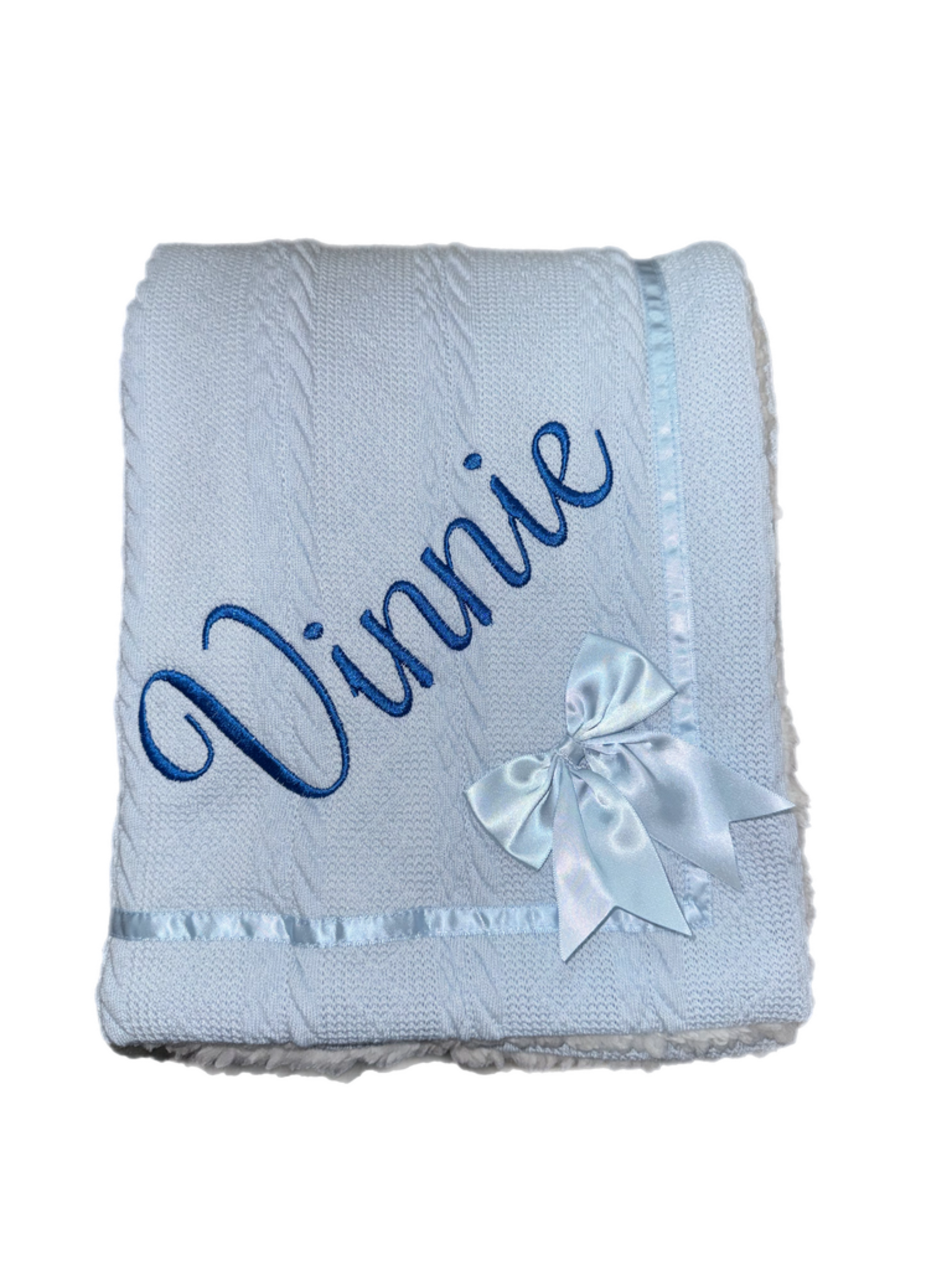 Personalised Blue Cable Knit Bow Blanket