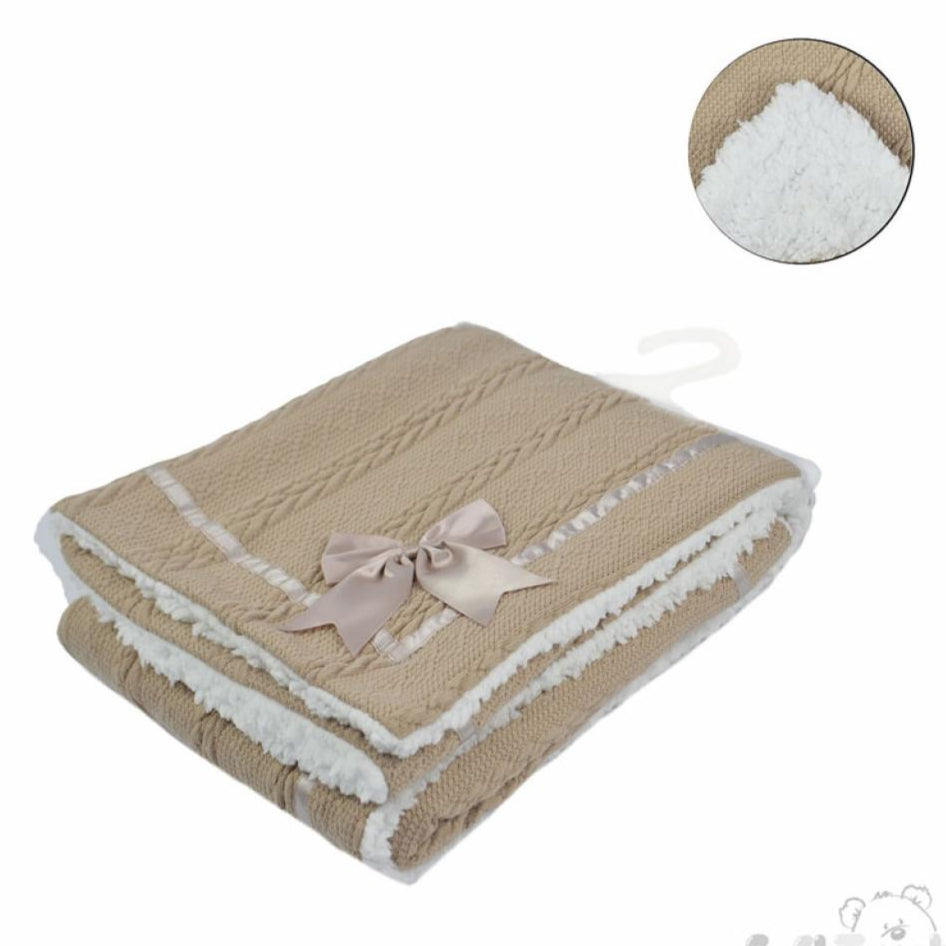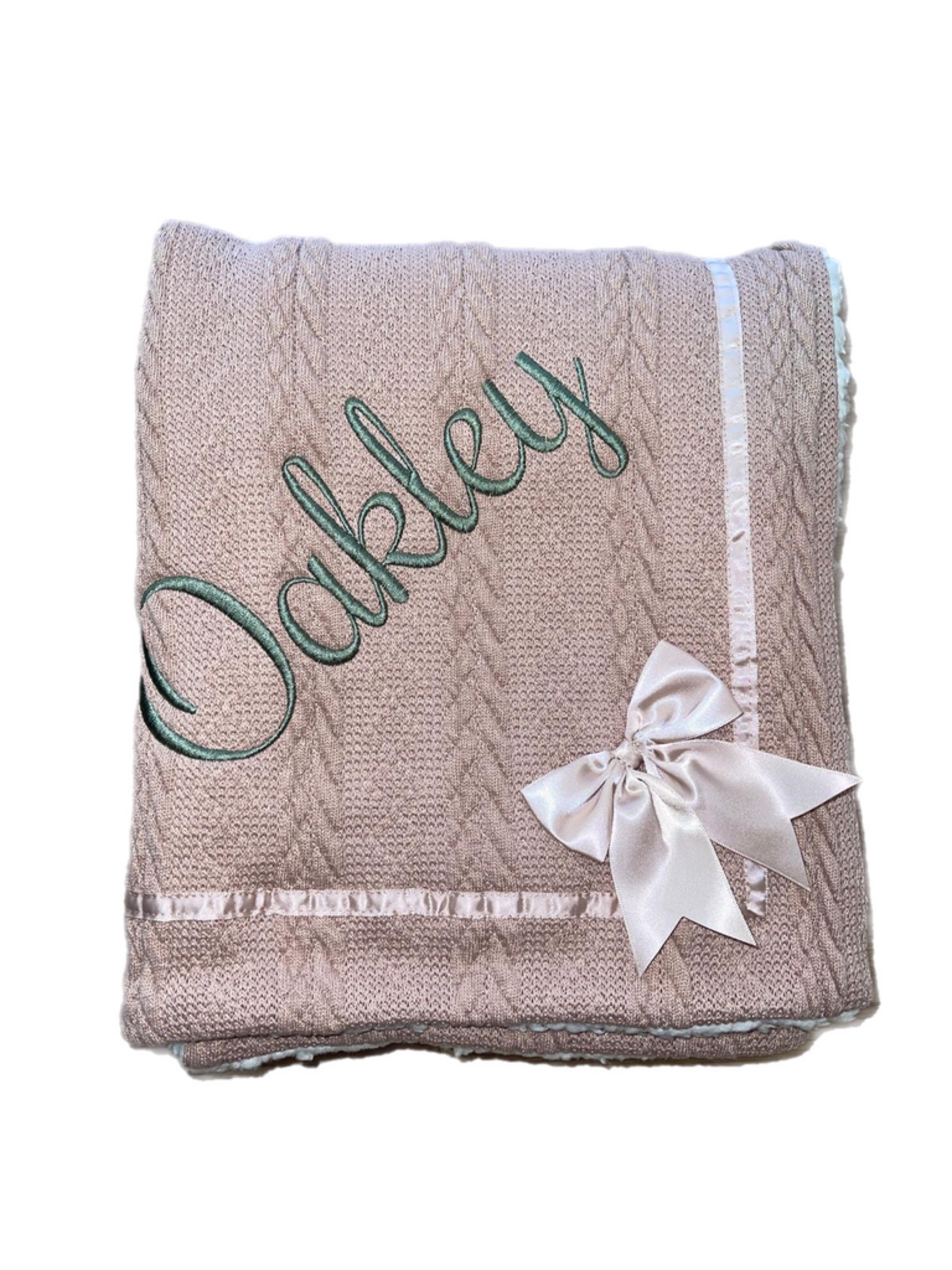Personalise this Stunning Cable Knit Bow blanket upto 12 characters, with a sherpa fleece backing