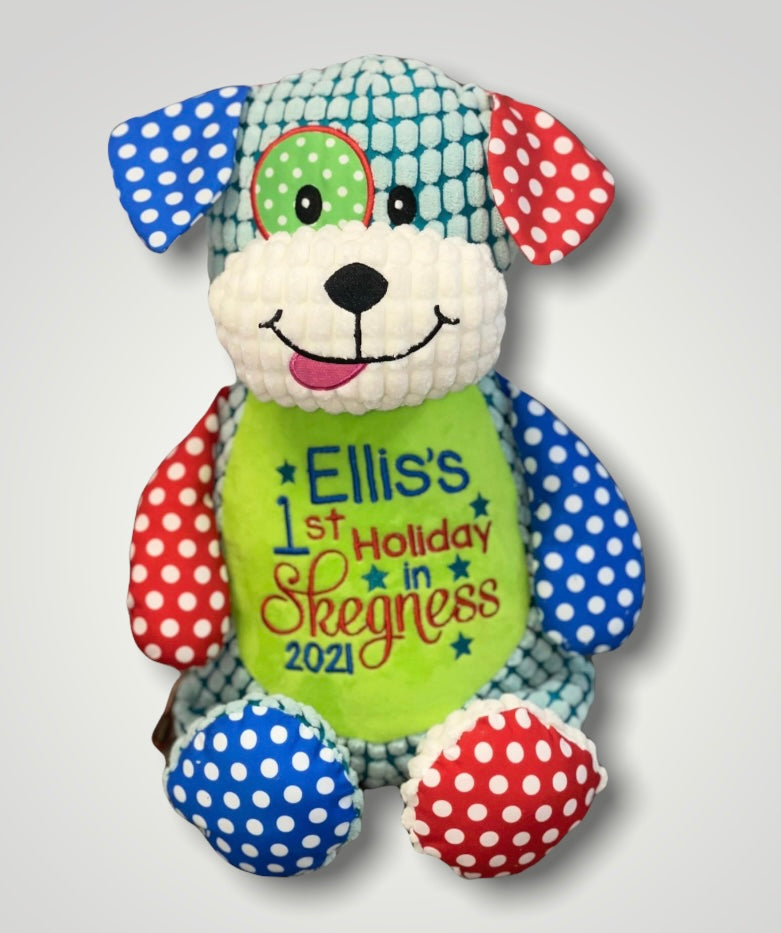 Personalised this cute Cubbies l harlequin dog teddy with one of our embroidery designs or your own wording/design