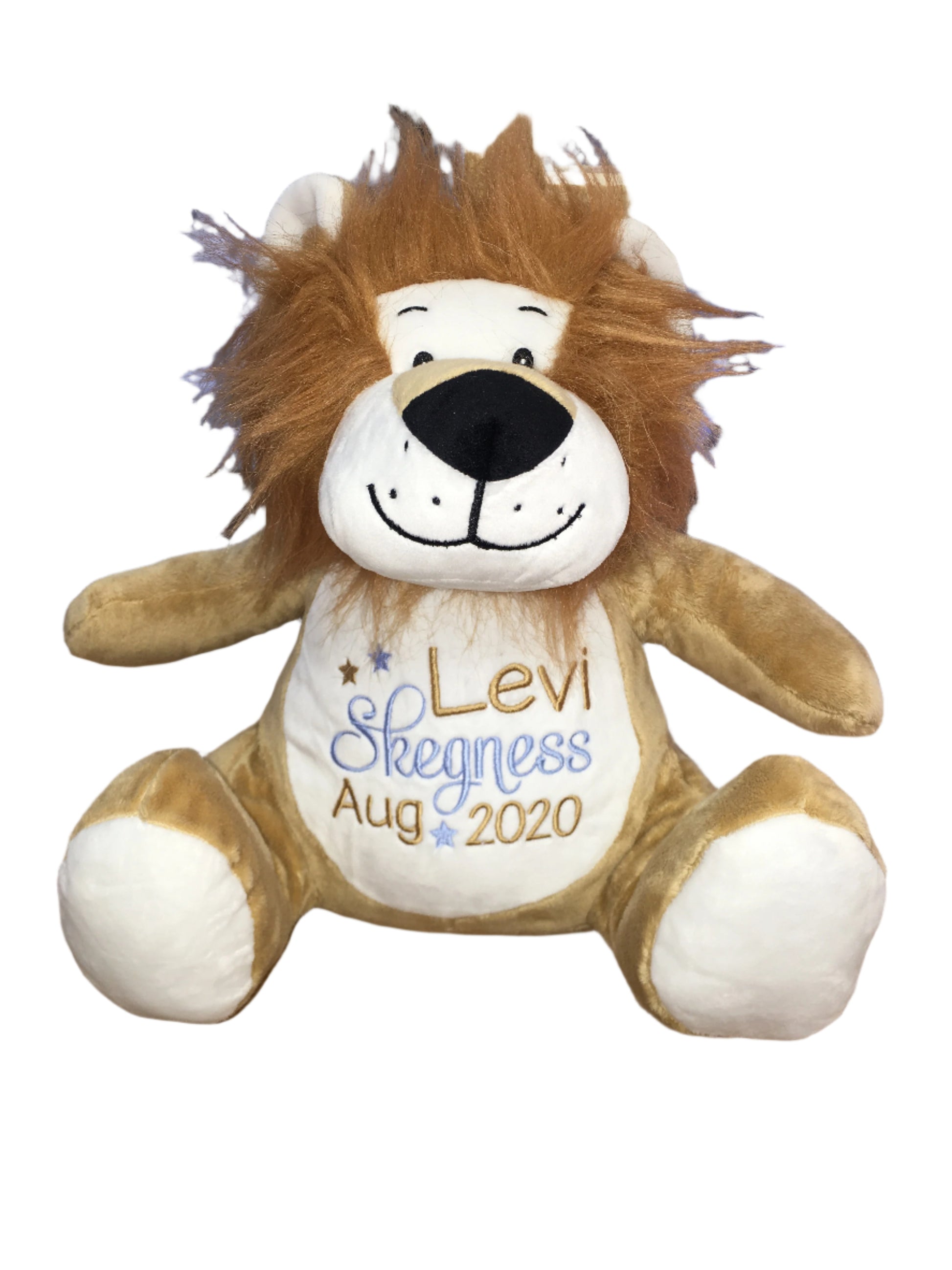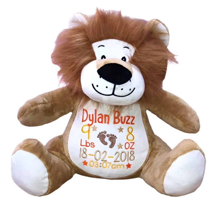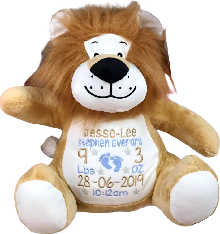 Our Lion teddy is a completely unique cuddly toy that can be personalised with a variety of embroidered design