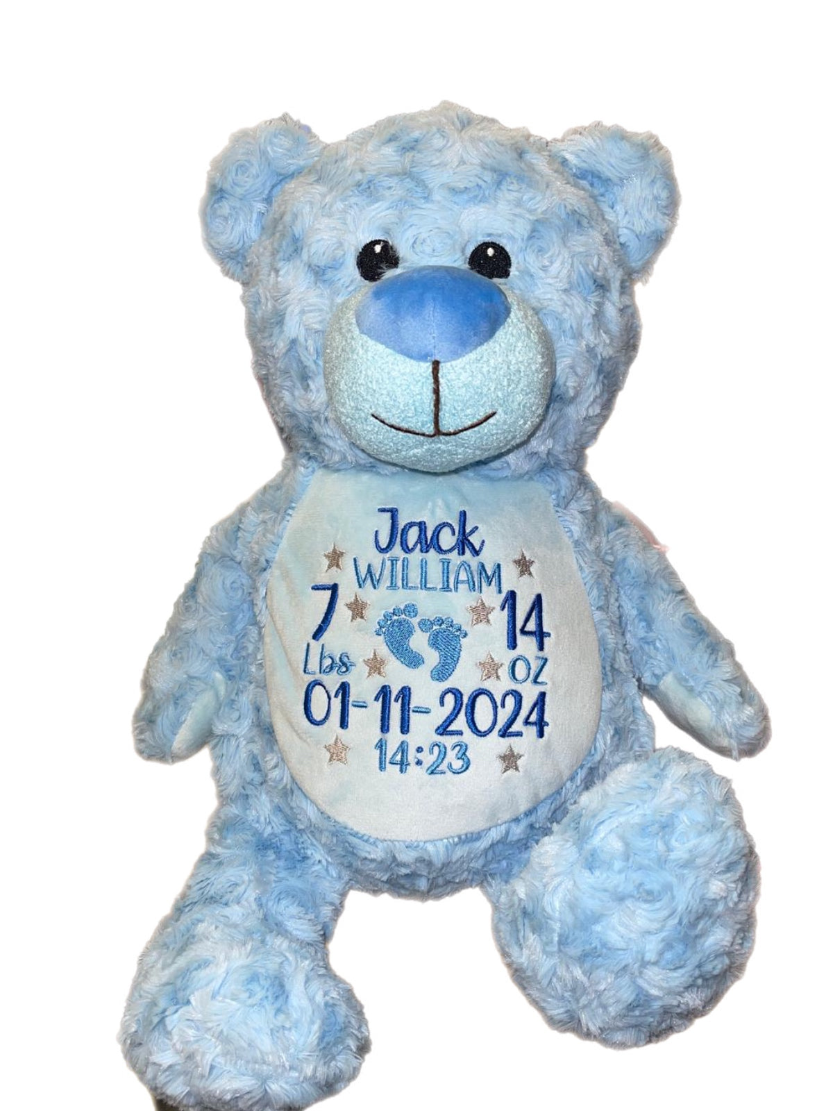 Each one of our memory bears are customisable which means you can choose from one of our stunning designs and include your own info or add your own bespoke text