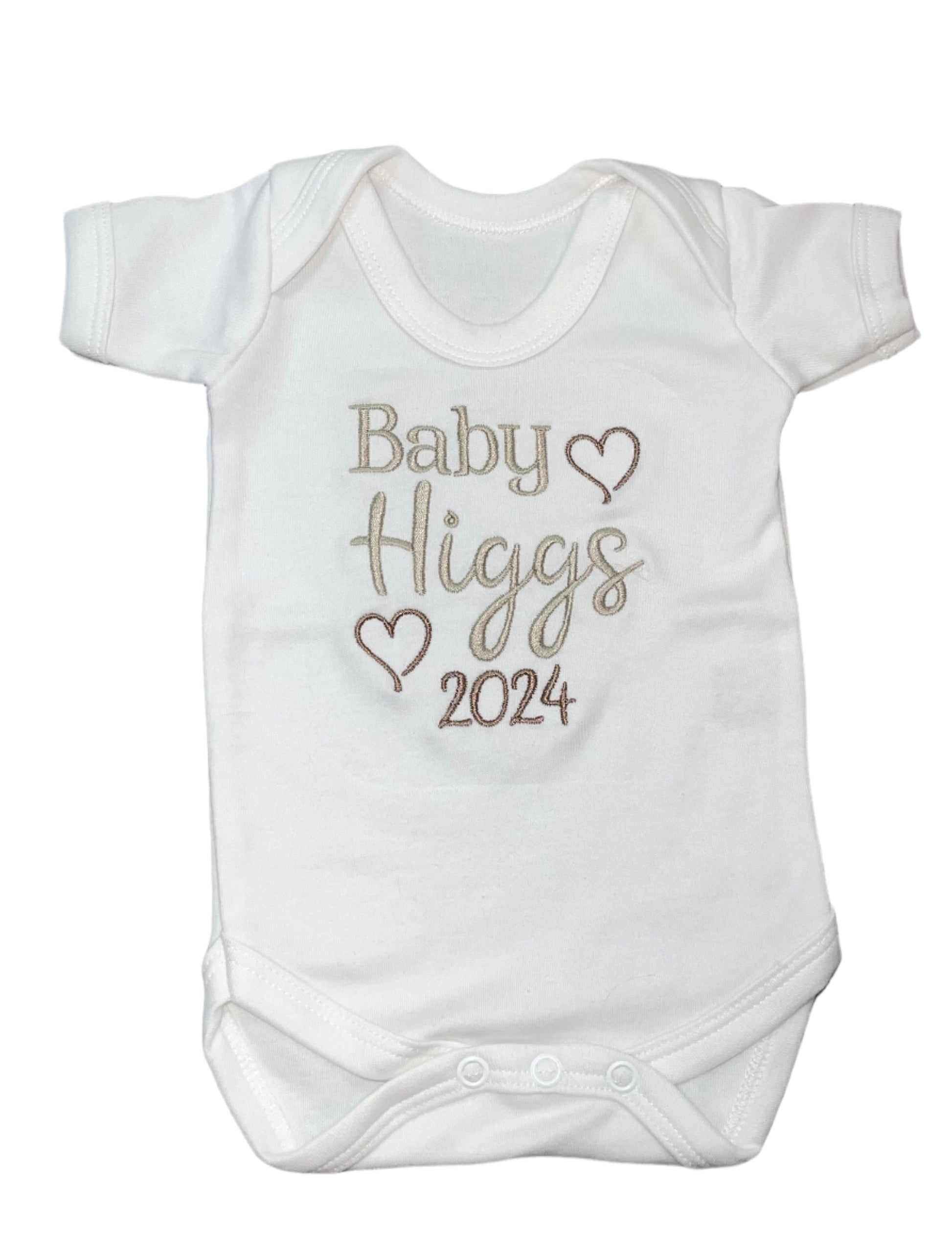 The vest will be lovingly embroidered with your choice of name, Baby………. Colour embroidery will be done in a neutral colour unless otherwise stated