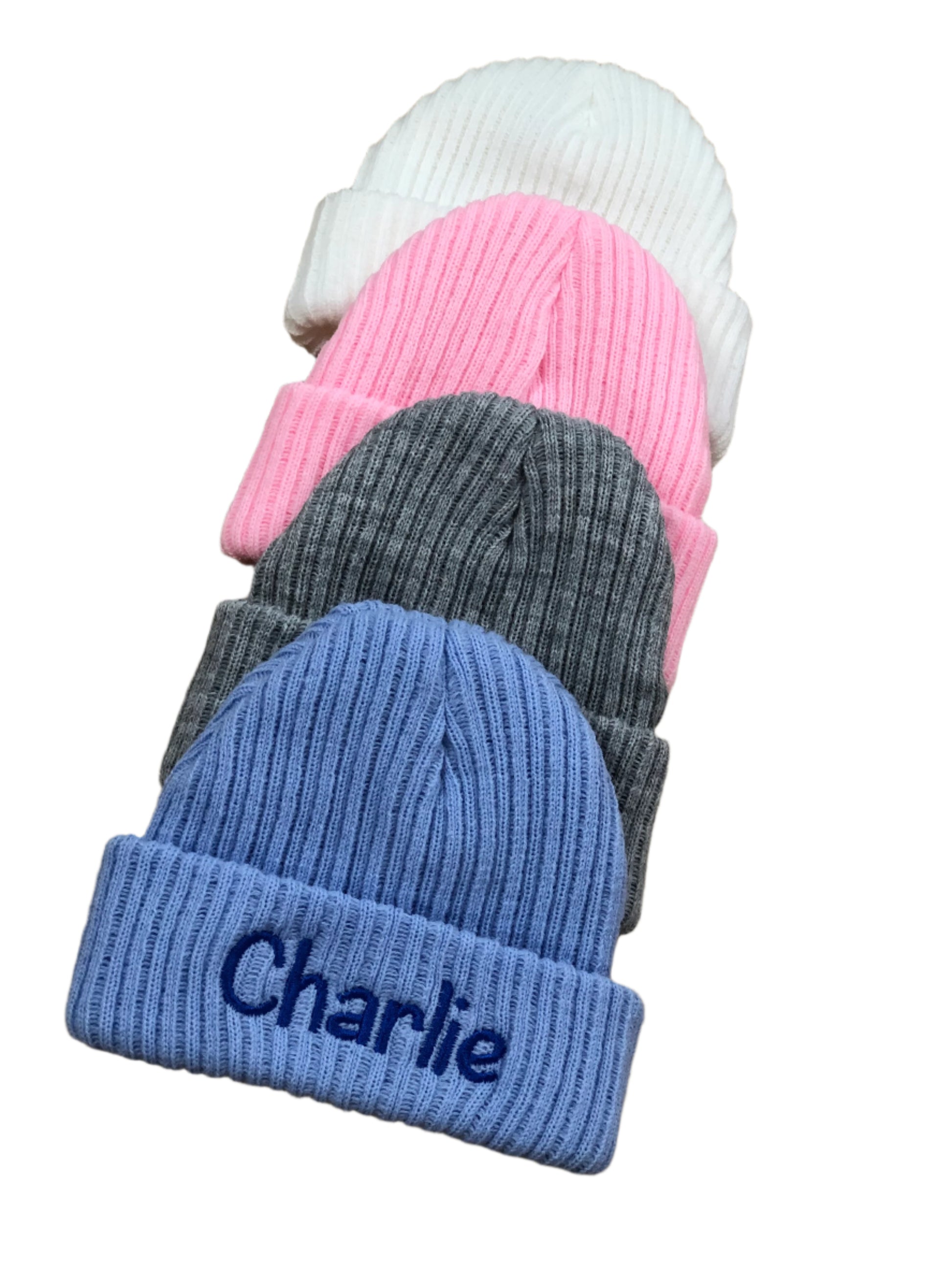 available in pink, blue, grey or white with any colour embroidery