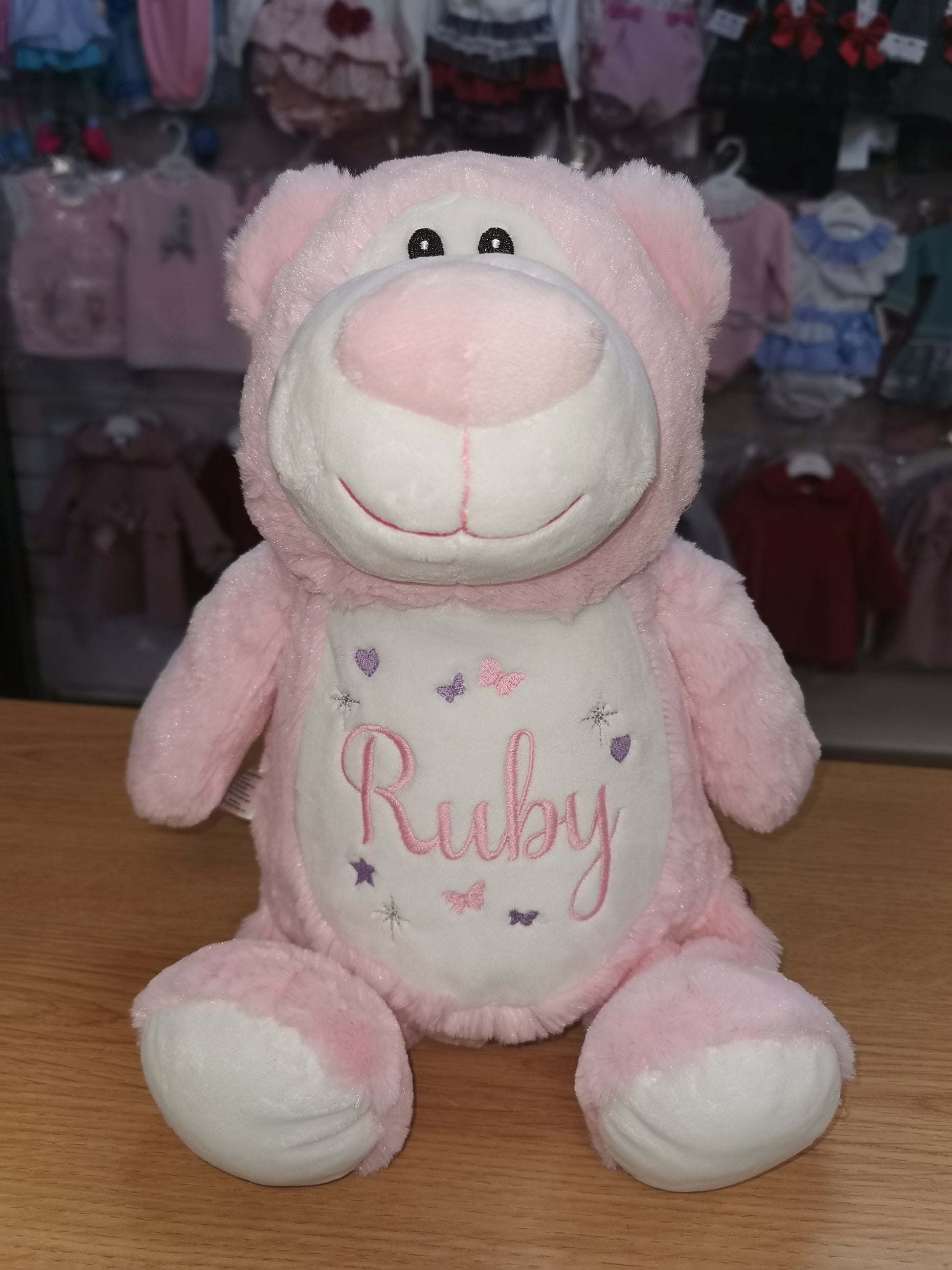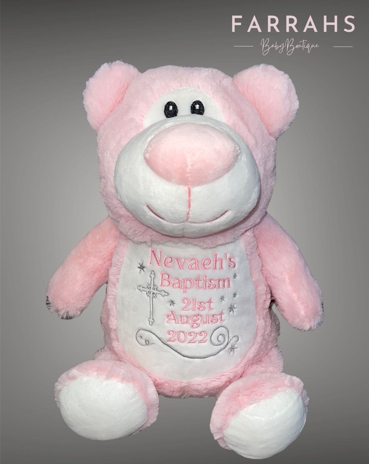 This bear is a perfect choice to personalise as a new baby girl gift