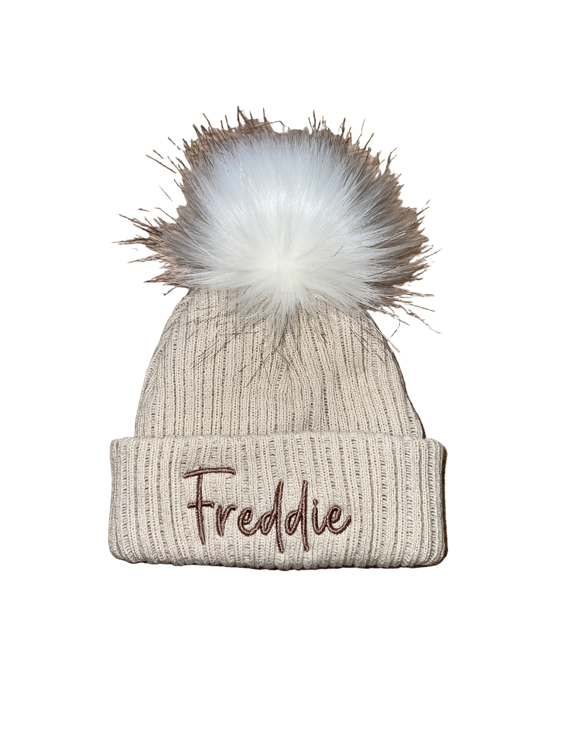 Personalised single pom pom hat - beige
