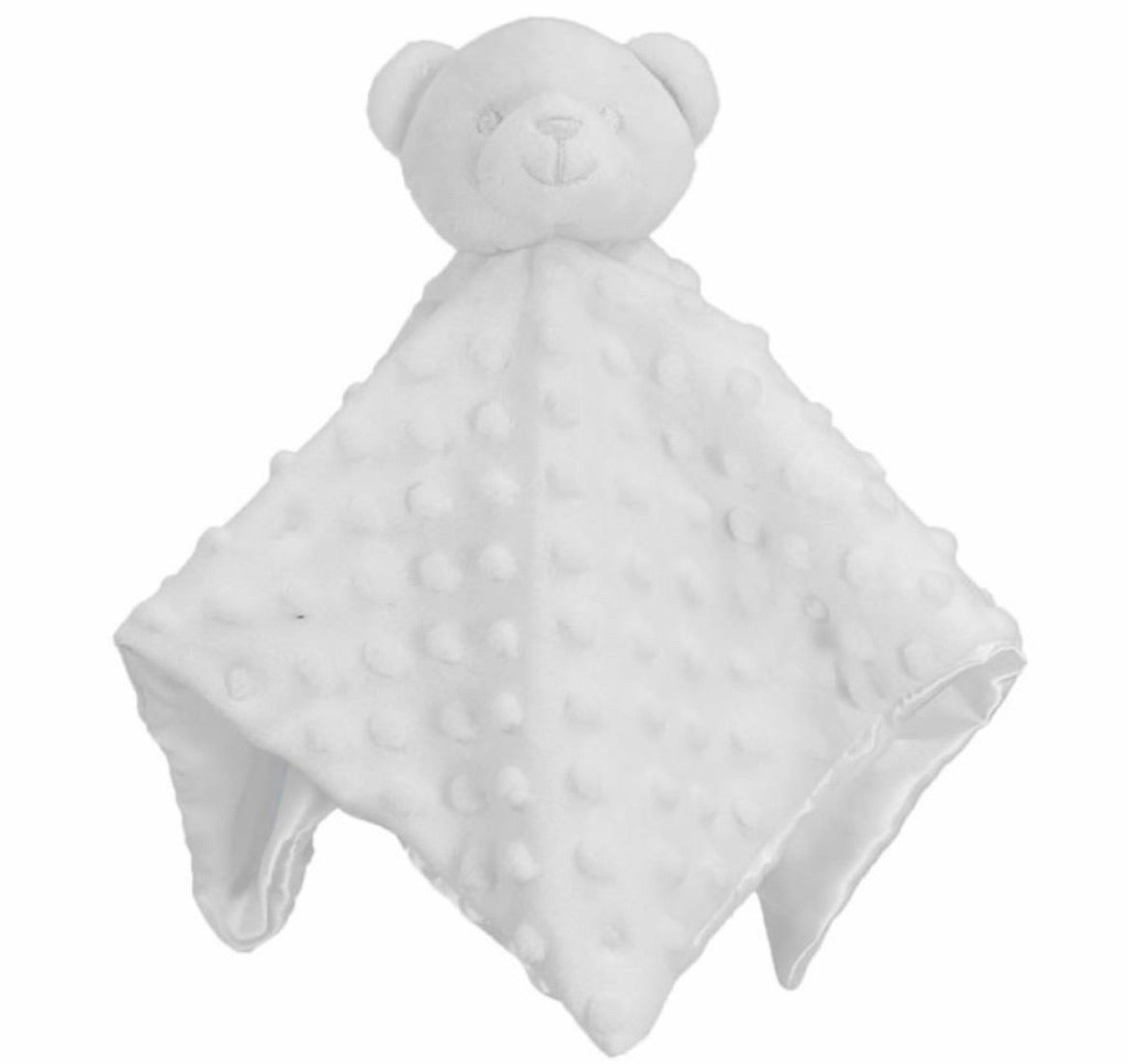 These lovey white bobbly comforters are perfect for babies who like to feel different textures, it has a silk backing